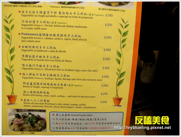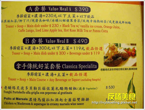 菜單主要以 排餐 義大利麵 披薩 為主