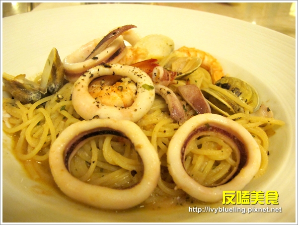 這是小反點的 白酒香蒜檸檬海鮮麵(230元)