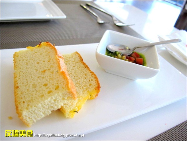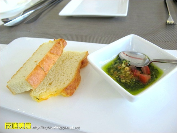 法可夏麵包搭配蕃茄青醬 入口還有著蒜香味