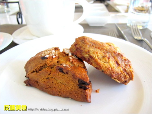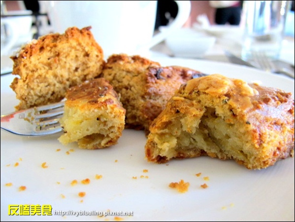外酥內軟的司康 微鹹甜的口感有迷迭香氣 還不錯吃