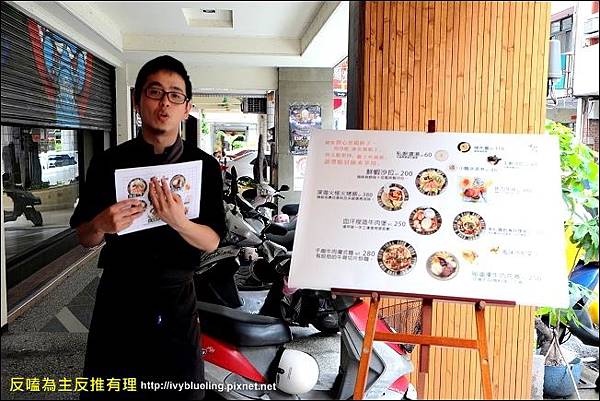 年輕老闆正認真的解說餐點中: ) 這天也是和一群部落客們一起試吃哈