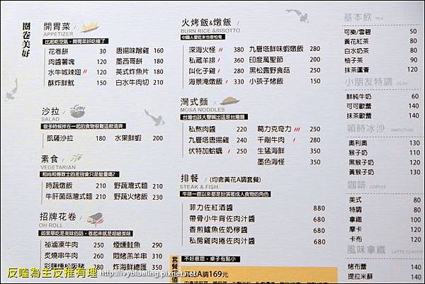 來介紹一下這裡的餐點 餐點價位大部分約為210-350元間