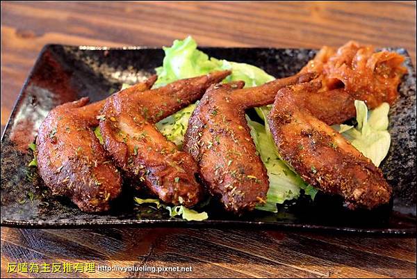 辣雞翅感覺加入不少辛香料進去 旁邊還有泡菜和生菜當配料