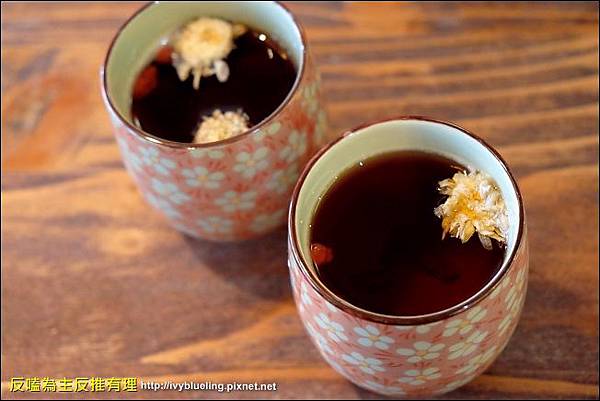 點餐招待的熱菊花枸杞老紅茶 熱熱喝還不錯耶