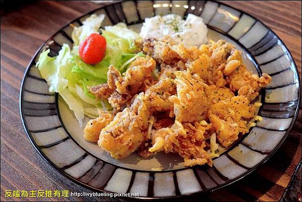 魷魚的皮稍微厚了點 魷魚還蠻軟口的中規中矩還OK 旁邊還有搭配生菜及馬鈴薯泥