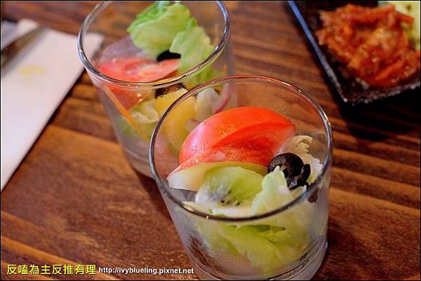 除了生菜 還有奇異果 蘋果和蕃茄 淋上優格醬 還蠻清爽的