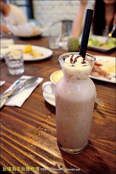 非常有創意的飲品名稱 其實就是巧克力香蕉牛奶冰沙拉 這是朋友點的 他說還不錯喝 也是店內的招牌飲品喔
