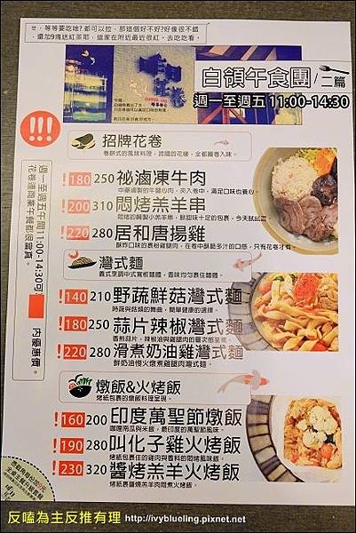 有花卷 漢堡 灣式麵 火烤飯 燉飯 排餐