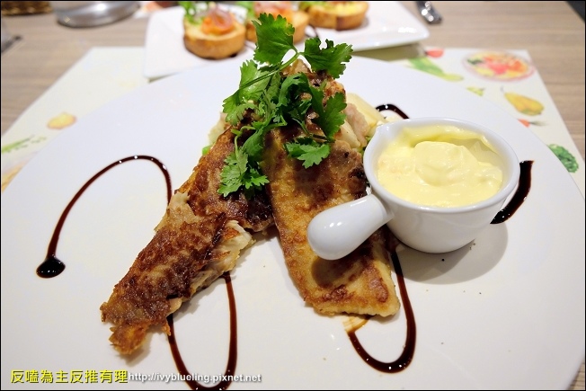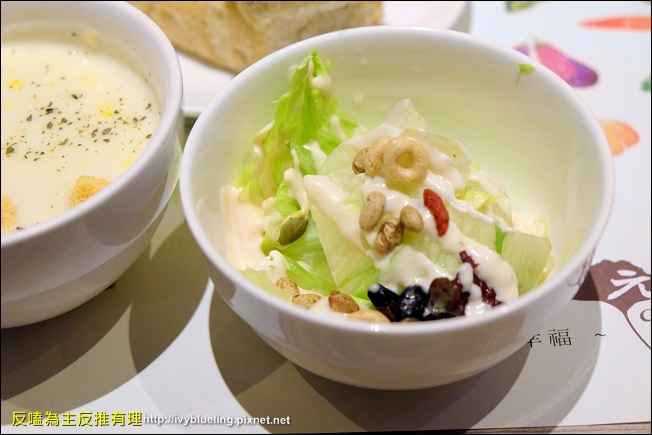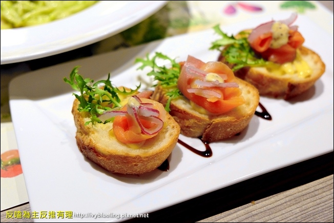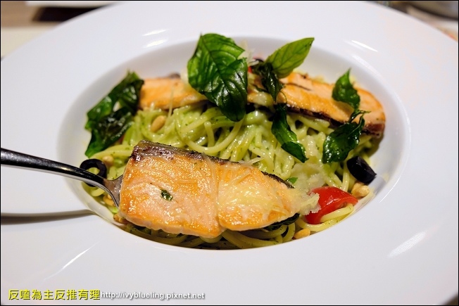 青醬搭配紅鮭魚肉好開胃 醬汁蠻濃的 還有淡淡的奶油香味 但個人覺得如果青醬味再濃一點會更好