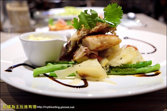 鯛魚有二大塊 搭配豆子和馬鈴薯泥 肉質很嫩 外面煎的乾乾的