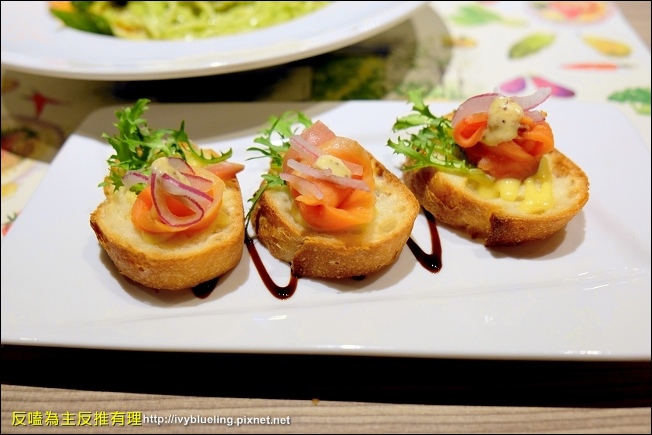 這是排餐搭配的主食 我們選的是開胃點心盤 是燻鮭魚法國麵包